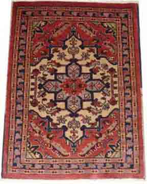 Im nordwestpersischen Bagschaich-Gebiet entstehen verschiedene Knüpfarbeiten mit großzügig stilisiertem Muster; das ist die Gruppe der sogenannten Bagschaich-Teppiche. Dazu gehören vor allem die in der Stadt Heris und den umliegenden Dörfern erzeugten sehr festen Teppiche und Brücken. Die älteren Heris-Typen haben das lang gestreckte Kelei-Format mit dünnerer Struktur, während die jüngeren annähernd quadratisch und ziemlich hochflorig sind. Das flächenhafte Muster wirkt durch die gegensätzlichen, aber weichgetönten pflanzlichen Farben besonders ruhig. Im Stil gehört dieses Muster zum Kreis der altkaukasischen „Drachen-Teppiche“. In der Zeichnung wurden ja die urwüchsigen, massiv ausladenden, mit Blüten belegten gezackten Blätter sowie die winkeligen Ranken und Palmetten jener alten Typen überliefert. Auch die Komposition des Musters beruht auf der wuchtigen Rautengliederung. Diese ist in der Einteilung des rautenförmigen Feldes zu erkennen, das ein großflächiges Medaillon ausfüllt.