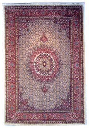 Die besten und schönsten Mescheder Teppiche werden als Moud bezeichnet. Sie zeichnen sich vor allem durch besonders feine Knüpfung, einen glatt geschorenen, dichten mittelhohen Flor sowie durch das sehr klar gezeichnete, reiche Medaillon- und Ranken-Blüten-Muster mit harmonischen Farben aus. Die Moud-Teppiche haben eine ausgesuchte, vorzügliche Knüpfwolle mit Glanz und eine feste aber biegsame Struktur. Das Grundgewebe besteht aus dünngesponnenem Baumwollgarn. Die Knüpfungsdichte erreicht oft die 400.000 persischen Knoten pro Quadratmeter.