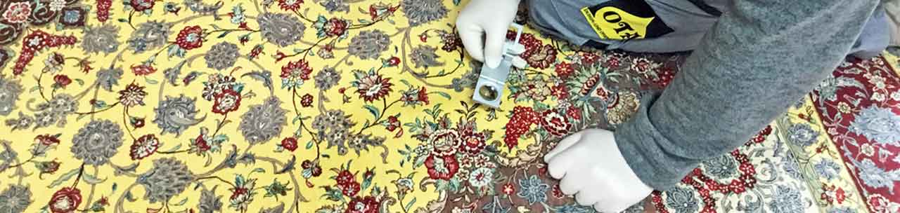 Alte natürlich gefärbte Wolle gewinnen wir aus ausrangierten Flachgeweben, die wir sorgfältig auftrennen und anschließend waschen. Sie hat den Vorteil, dass sich ihr Farbwert nicht nachträglich verändert. Es besteht somit keine Gefahr, dass die Flickstelle durch eine nachträgliche Farbveränderung sichtbar werden könnte. Falls trotz unser großen Auswahl die passenden Materialien fehlen, färben wir die Materialien speziell ein. Bei der Florreparatur verwenden wir dieselbe Knüpfung wie im Teppich, so dass man die Reparatur auch von der Rückseite fast nicht erkennen kann. Am Ende einer Florrestauration schneidet der Restaurateur die eingeknüpfte Wolle bzw. Seide auf die entsprechende Florhöhe des Teppichs ab. Dabei muss er äußerst detailgetreu arbeiten und darf keinen Fehler machen, sonst ist die Reparatur zunichte.