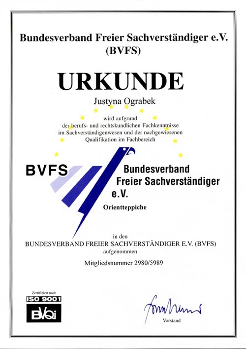 - Wir ermitteln den Neuwert/Zeitwert eines Orientteppichs und stellen ein Echtheitszertifikat aus.